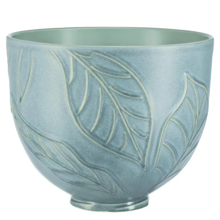 Forny kjøkkenet ditt. Oppgrader kjøkkenmaskinen din med denne vakre KitchenAid Spring Leaves Bowl (5KSM2CB5LB). Den teksturerte keramikkskålen med blader har en reaktiv blågrønn glasur som betyr at hver enkelt er unik på grunn av små variasjoner som følge av aktiveringsprosessen.