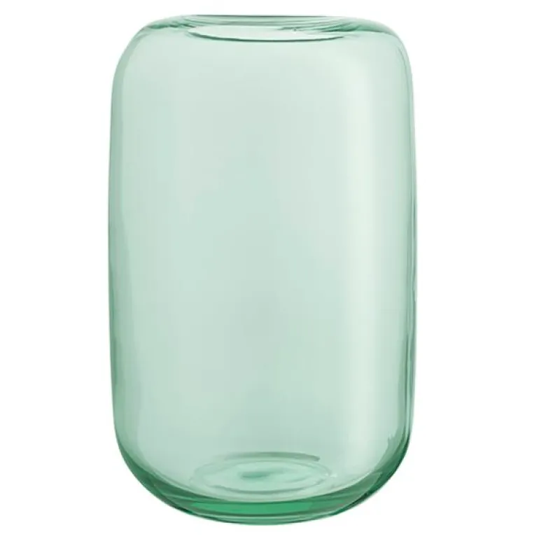 Acorn vase fra Eva Solo i ‘mintgrønn’ glass, med en høyde på 22 cm, er et stilig innslag i hjemmet. Acorn-vasens rene, organiske form gjør den til et dekorativt element, selv uten blomster. Den smale åpningen i toppen gir god støtte til blomster og kvister, slik at bukettene holder seg samlet og presenteres på en vakker måte.