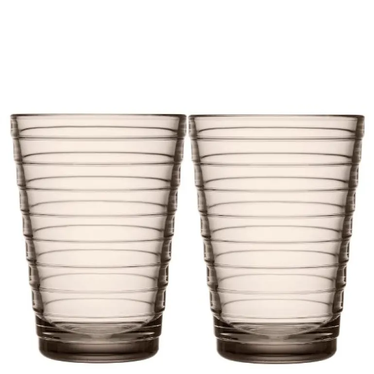 stabling og ulikt bruk var utgangspunktet da Aino Aalto skulle utvikle glassene. ?Bølgeblikk? er det originale navnet på glassene og inspirasjonen til formen er fra ringene som dannes når man kaster en sten i vannet. Formpressede glass. Tåler oppvaskmaskin og kan stables men vent til de er avkjølte.