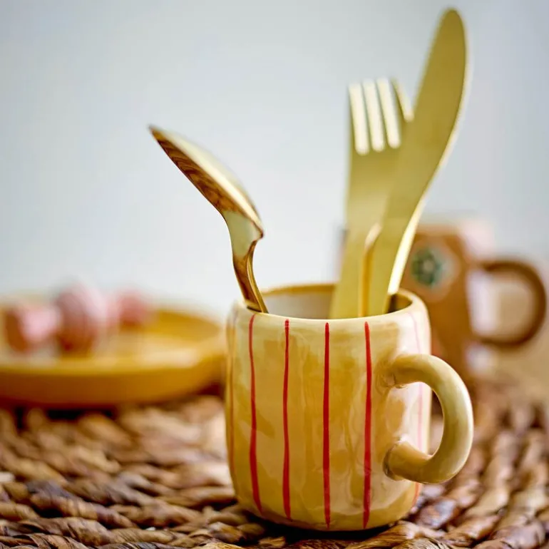 Ally barnebestikk 3 deler i gull fra Bloomingville MINI er et vakkert designet sett i rustfritt stål som består av kniv, gaffel og skje – perfekt til små hender.