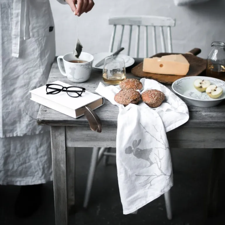 Alv tekstil er i en behagelig lin-/bomullskvalitet. Den lette tekstilene er delikate i fargevalget og bærer preg av en detaljert og møysommelig designprosess.