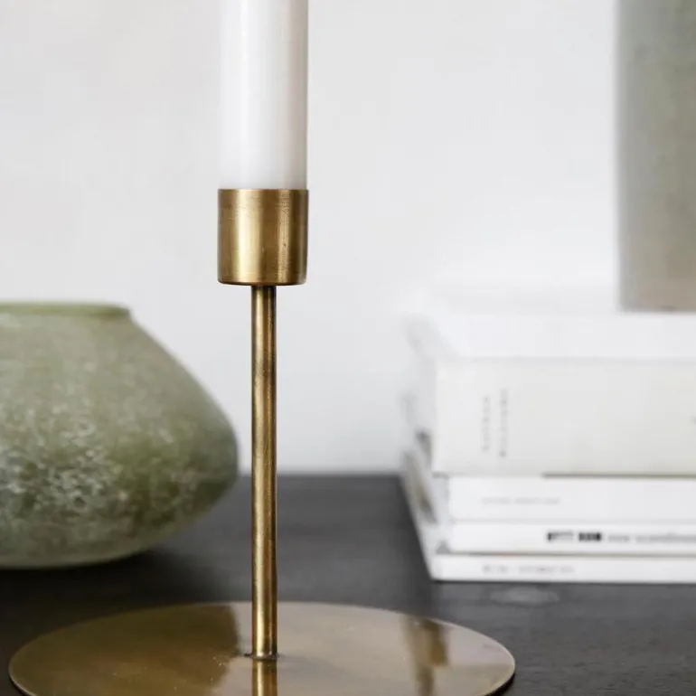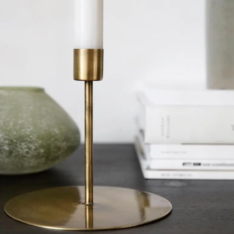 Stearinlys gir en koselig og varm atmosfære til rommet. Med Anit lysestake 12 cm fra House Doctor får du en vakker holder av jern til stearinlys (diameter 2 cm). Med antikk messingfarge kombinert med jernstruktur gir det et unikt og rått utseende. Designet er enkelt med runde former. Bruk den alene som borddekorasjon når du har gjester på besøk, eller bruk den som en del av en klynge med andre lysestaker i forskjellige materialer for et personlig utseende. Passer til stearinlys 2 cm diameter.