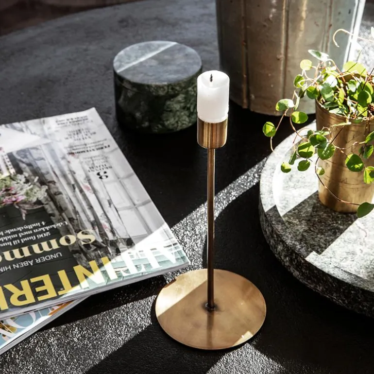 Det finnes ikke noe som er så hyggelig som levende lys på regnfulle, mørke høstdager. Anit 20 cm antikk messing fra House Doctor er en vakker lysestake laget av jern som gir den et rått utseende. Lysestaken har en vakker messingfinish som gir hjemmet innredning med personlighet. Bruk lysestaken som pynt på spisebordet, salongbordet eller i vinduskarmen.