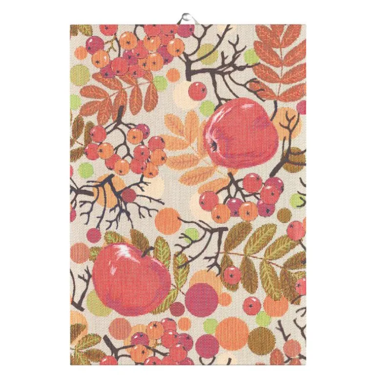 Äppelbär kjøkkenhåndkle 35×50 cm fra Ekelund er et dekorativt og funksjonelt håndkle som gir kjøkkenet et friskt og naturlig preg. Det sjarmerende mønsteret av epler og bær tilfører en livlig og innbydende atmosfære som passer både til hverdagsbruk og spesielle anledninger.