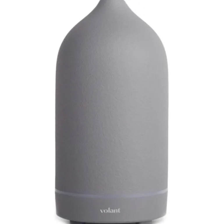 Den tidløse klassikeren, aroma steindiffuser i grå fra Volant. Volants håndlagde steindiffuser hjelper deg å bruke eteriske oljer i hjemmet samtidig som den er minimalistisk og elegant. Den keramiske overflaten i matt sort legger til et element av high-fashion i huset uansett hvor den plasseres. Steindiffuseren er håndlagde og hver av dem er derfor unike. De er laget med 5 mm veggtykkelse og malt med bærekraftig og motstandsdyktig farge. Steindekket er vakkert matt og laget av førsteklasses porselen som vil vare i lang tid. Steindiffuseren er designet i Norge og hyller regionens naturlige former og materialer. Den prisbelønte diffuseren inneholder en liten plate som skaper en sval, forfriskende damp når den vibrerer, akkurat som dampen fra et fossefall. Denne vibrasjonen bryter ned de tilsatte eteriske oljene til mikroskopiske partikler og sprer dampen ut i luften, noe som gjør det enkelt og trygt å friske opp hjemmet ditt.