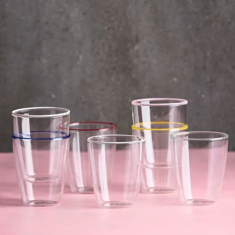 Laget av slitesterkt borosilikatglass, er glasset både lett og holdbart. Det tåler oppvaskmaskin og temperaturer opptil 120 grader, noe som gjør det både praktisk og funksjonelt for daglig bruk. Perfekt for deg som ønsker et stilrent uttrykk med en moderne vri.