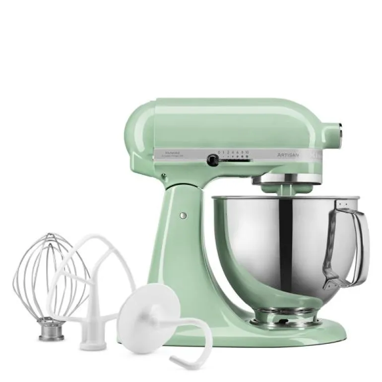 Opplev allsidighet på kjøkkenet med KitchenAid 5KSM125EPT Artisan 4,7L kjøkkenmaskin, i den vakre grønnfargen pistasj. Med sitt avrundede design og vippehode er denne kjøkkenmaskinen en fryd for øyet samtidig som den leverer kraft og ytelse.