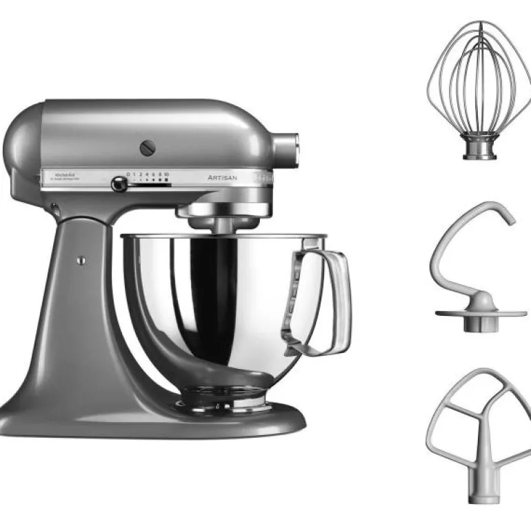 Standardtilbehøret som følger med, dekker de fleste behov på kjøkkenet: en 4,8 liters bolle med ergonomisk håndtak, en seks-tråders visp for eggehviter, fløte og dipper, en flatvisp til tykkere blandinger som kaker og småkaker, samt en eltekrok til gjærdeiger som pizza- og pastadeig. Med KitchenAid Artisan får du en kjøkkenmaskin som blir selve hjertet på kjøkkenet, klar for alt fra hverdagsmat til store kulinariske prosjekter.