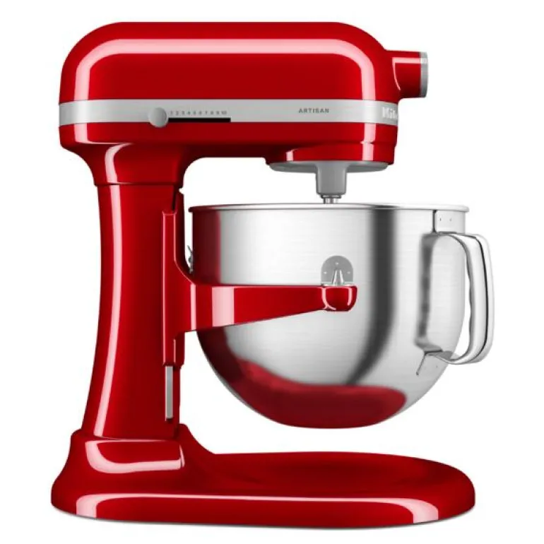 Rød Artisan kjøkkenmaskin 6,6 liter med bolleløft. Artisan 5KSM70SHXEOB vil bli din beste hjelper på kjøkkenet! KitchenAid maskinen er redesignet innvendig og utvendig, denne modellen med løftearm er holdbar, kraftig og stillegående – den har også det klassiske KitchenAid-utseendet.