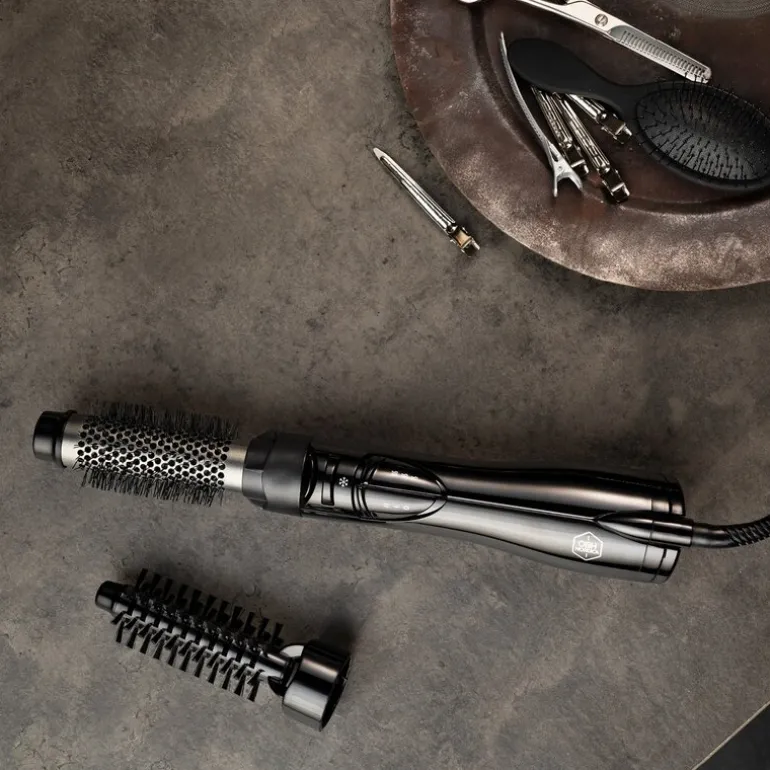 Gi håret ditt volum og bevegelse med glans ved hjelp av OBH Nordica Artist Air Styler Air Curl. Dette allsidige stylingverktøyet leveres med to børstehoder som lar deg skape både perfekte krøller og løft ved røttene.