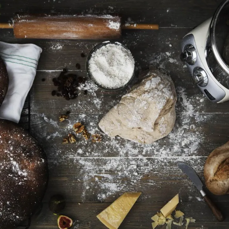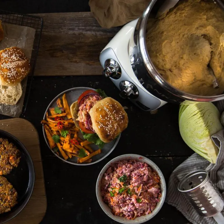 Sammen med Ankarsrum Assistent får du med mye tilbehør, som deigrulle, eltekrok, deigskrape og deigkniv. I tillegg følger det med en vispebolle på 3,5 liter, en dobbeltvisper, en mørdeigsvisper og et hevelokk. Dette gir deg muligheten til å lage alt fra luftig krem til grove brøddeiger. Du justerer hastigheten som du selv ønsker. Selv på maks hastighet står kjøkkenmaskinen fjellstøtt på benken. Maskinen har også en innebygd timer.