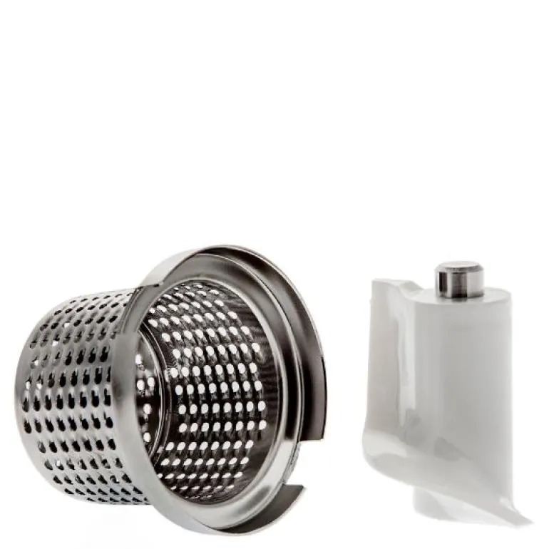 Originalt rivjern til Ankarsrum Assistent. Festes på kjøttkvernen (selges separat). River nøtter, mandler, parmesan, gulrot, osv. Vaskes for hånd. Passer til alle kverner fra N10 og nyere.