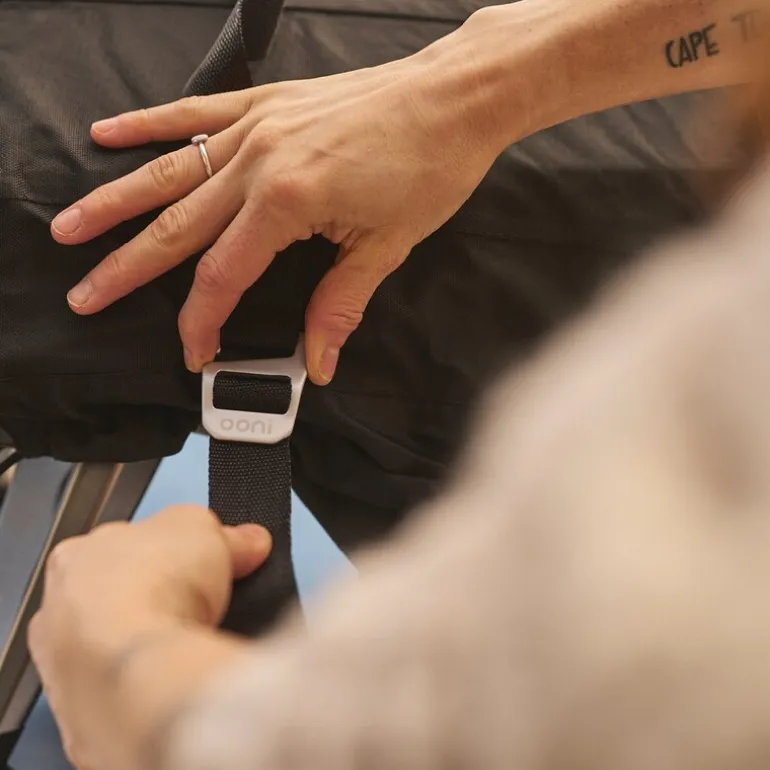 Den elastiske kanten gjør det enkelt å montere trekket tett rundt ovnen, mens de justerbare stroppene og polstrede håndtakene gjør den komfortabel å bære. Integrerte detaljer som selespenner i aluminium og en dedikert løkke for gassregulator gir ekstra trygghet under transport.