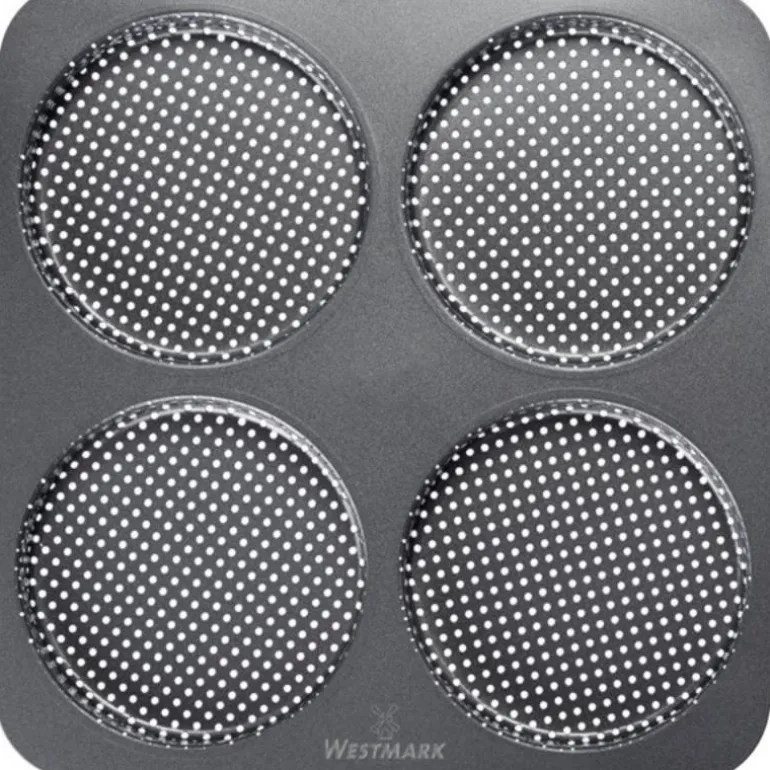Bakeform for 4 hamburgerbrød på 12 cm i diameter. Non-stick belegget sammen med perforeringen sikrer en jevn fordeling av varme under baking. Stekeformen er laget av tåler og er 28x28x2.5cm.Håndvask anbefales. 5 års garanti.
