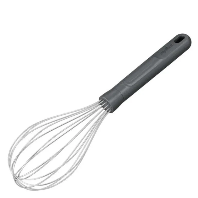 Grå ballongvisp 26 cm fra Zyliss. Det tykke og ergonomisk utformede håndtaket med praktiske grepslinjer sikrer et fast grep selv ved langvarig bruk. Ballongvispen er ideell for å vispe større volumer.