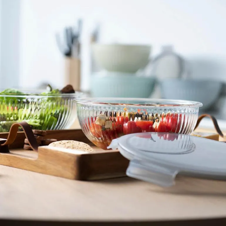 Bayk bolle 2 L klar fra Modern House. Oppbevaringsskål produsert av ildfast glass. PP lokk med silikonpakning for tett lukking som holder maten lenger frisk.