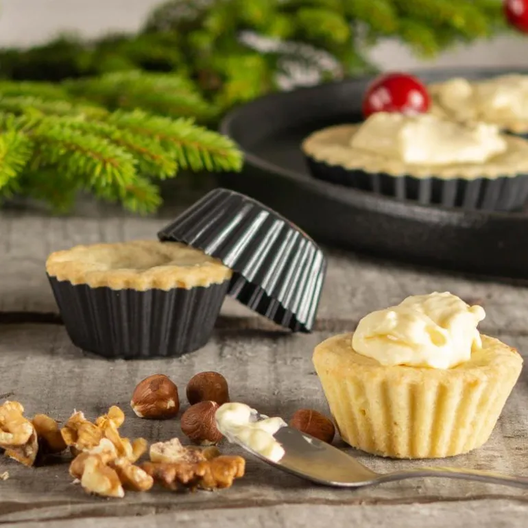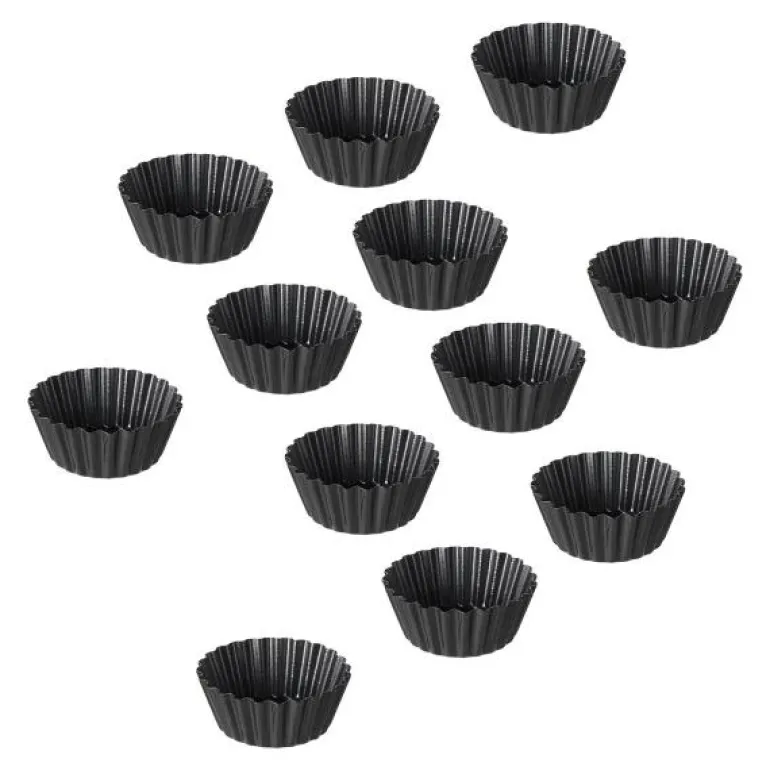 Sett av 12 små bakeformer, laget i karbonstål, PFAS fritt og slipp-lett belegg.