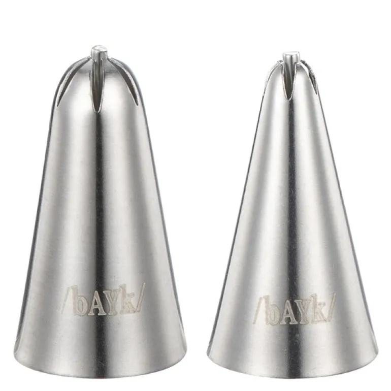 Med bAYk tippsett fra Modern House kan du enkelt skape flotte dekorasjoner til kaker, cupcakes og desserter. Settet inneholder to lukkede stjernetipper – SL5 (5 mm) og SL9 (9 mm) – som er ideelle for å lage delikate blomster, rosetter og dropflowers. Disse tyllene gir et vakkert preg på bakverket og gjør det enkelt å få et profesjonelt utseende.