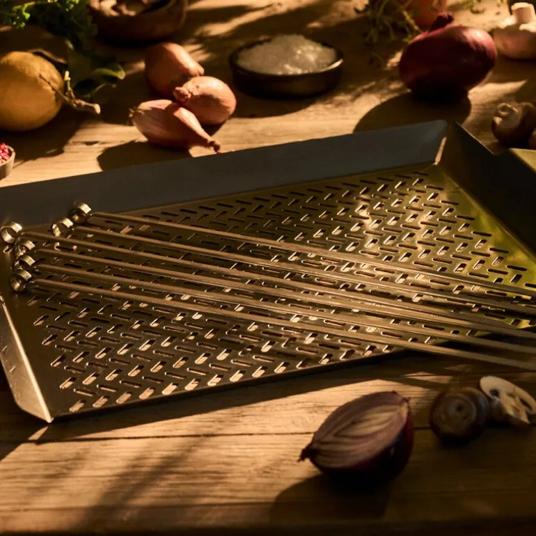 BBQ by Hellstrøm grillspyd er designet for deg som ønsker å ta grilling til et nytt nivå. Dette settet med seks grillspyd, utviklet i samarbeid med Eyvind Hellstrøm, gir deg perfekte verktøy for å tilberede alt fra møre kjøttstykker og smakfulle grønnsaker til saftig sjømat.