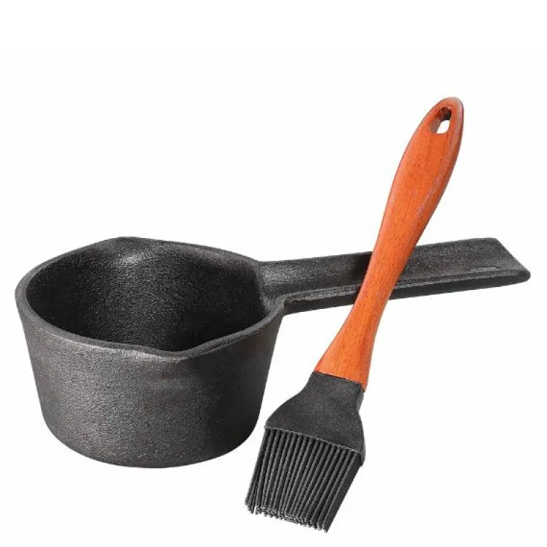 Varm opp og påfør marinader. Marinaden utgjør hele forskjellen! Takket være den krydrede sausen blir spareribs, kyllingvinger og fiskefileter spesialiteter, og en rekke smaker fra mild til søtt og syrlig til ekstra krydret gir grillmesteren kulinarisk frihet. En annen fordel: Hvis du marinerer grillen selv, kan du være sikker på at den ikke inneholder allergener eller konserveringsmidler. BBQ-marinadesettet fra KÜCHENPROFI inneholder en gryte og en børste. Du kan varme marinaden i den solide støpejernspanna slik at den fester seg bedre til maten som skal grilles. Beholderen fungerer også som en praktisk hylle for børsten. Gryten passer til grillen, ovnen og alle typer komfyrer. Børsten har et håndtak av fint palisander, silikonbørstene er enkle å rengjøre.