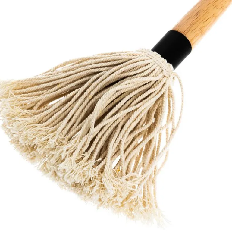 Denne myke og absorberende BBQ-moppen plukker opp tynnere sauser enn en vanlig silikonbakekost og sprer en jevn saus, marinade eller olje over dine grillede kjøttstykker. Det ekstra lange, varmebestandige håndtaket beskytter mot varmen slik at du kan bruke den mens du griller. Mopp er et begrep som kommer fra sørstatene i USA når du tilbereder store mengder kjøtt i BBQ-groper og bruker en mopp til å pensle på en tynnerer saus, kalt mopp saus.Mål: Lengde: 45 cmBredde: 4 cm