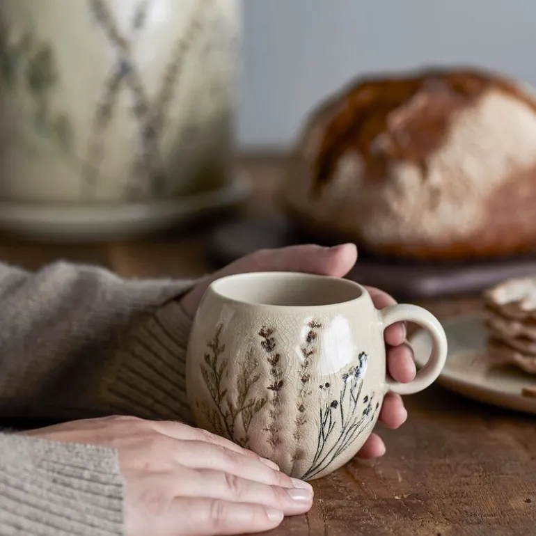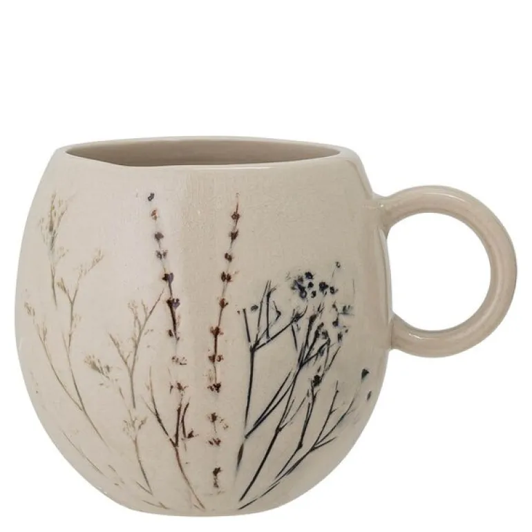 Bea krus 25 cl i natur fra Bloomingville er et vakkert krus laget av steintøy, glasert i en delikat beige tone med en subtil krakelert effekt. Det håndmalte blomstermotivet gir hvert krus en unik karakter og tilfører en personlig touch til serien. Med en kapasitet på 25 cl er kruset perfekt til kaffe, te eller andre varme drikker. Det er også praktisk og enkelt å vedlikeholde, da det tåler oppvaskmaskin.