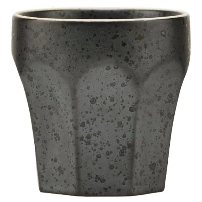 Noen ganger trenger du bare en ekstra dose koffein. Espressokopp 10 cl svart, av steintøy kalt Berica har ikke et håndtak, men hviler komfortabelt i hånden, takket være den rillede formen. House Doctor har gitt den en unik overflate som ser oksidert ut med sine uregelmessige svarte farger og små flekker. Dekk et frokostbord med tallerkener og kopper i et lignende utseende, eller bland med et utvalg av teksturer og glasurer for en personlig borddekking som vekker sansene.