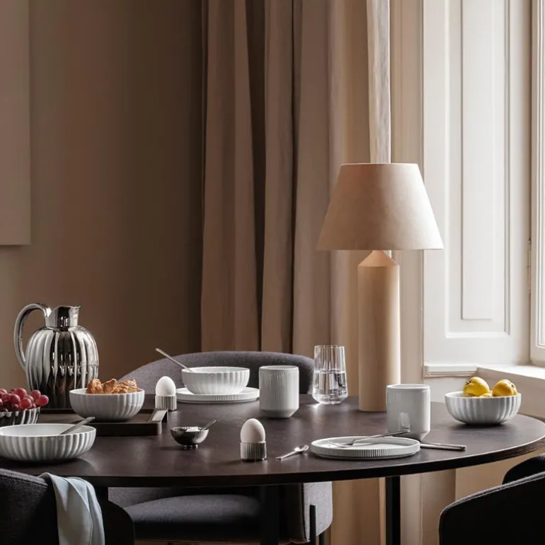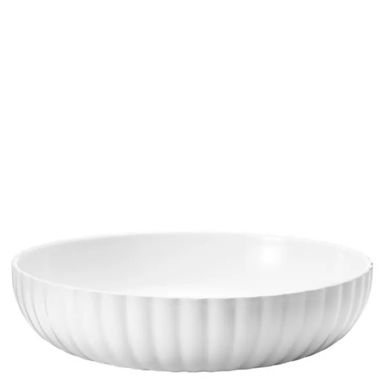 Bernadotte serviset fra Georg Jensen lar deg dekke bord i moderne minimalisme og et streif av art deco-stil, som kollektionen har røtter fra. De ikoniske rillene fra Bernadotte kolleksjonen rammer inn asjetten og danner en elegant kontrast til den runde formen. Størrelsen er perfekt som pastatallerken eller en serveringsskål, og er både elegant i seg selv og i kombinasjon med kolleksjonens asjetter, tallerkener og glass.