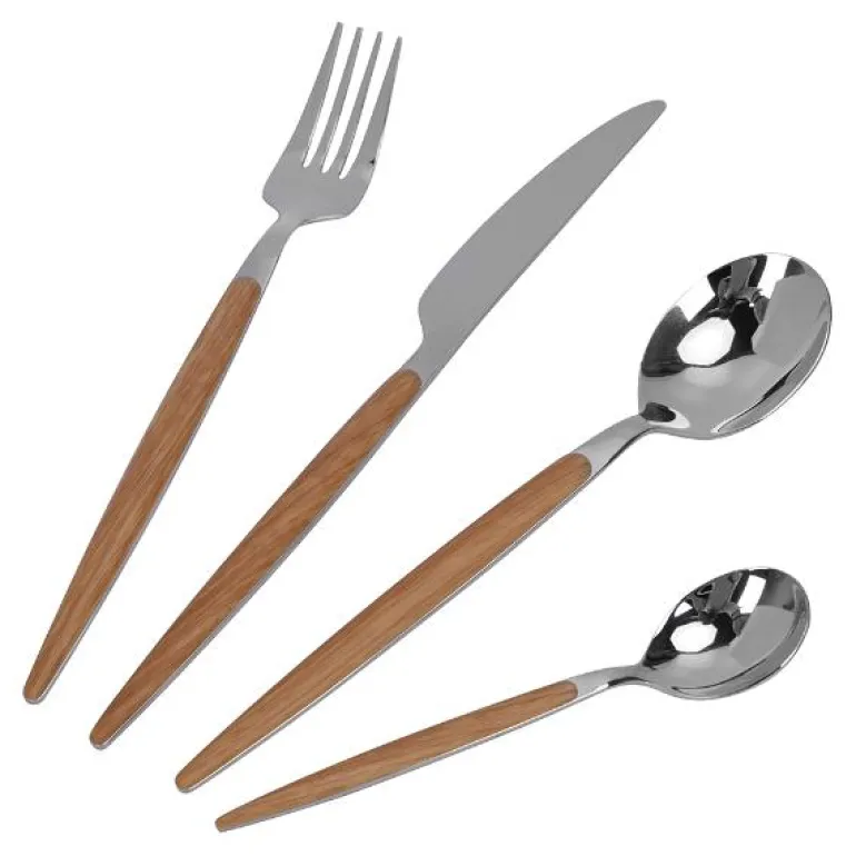 Eik bestikksett i 16 deler fra Modern House gir bordet et herlig touch av retrostil. Som alt laget av tre, gir den vakre og holdbare eiketre-imitasjonen et tilskudd av varme på bordet. Men til forskjell fra trebestikk, kan dette bestikksettet med vaskes i oppvaskmaskin uten å bli verken matt eller flisete.
