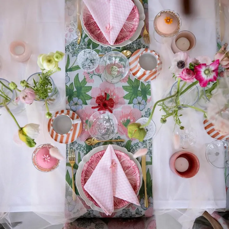 Bettys tulpaner løper fra Ekelund er et friskt og dekorativt innslag som gir borddekkingen et vårpreg. Med målene 35×120 cm er den lett å bruke både på langs og på tvers av bordet, enten du legger den rett på bordplaten eller over en duk. Det rosa tulipanmønsteret tilfører farge og liv uten å dominere, og passer til både hverdag og fest.