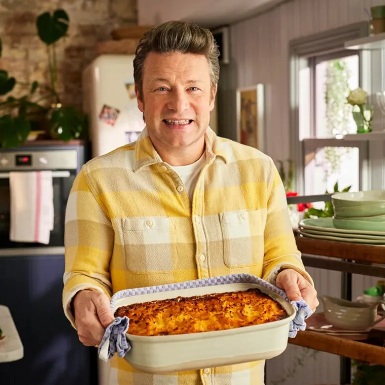 Big Love ildfast form fra Jamie Oliver, 39×25 cm i klassisk hvit, er et essensielt redskap for kjøkkenet ditt. Laget av robust steingods, er denne formen designet for å tåle både intens bruk og høy varme, opptil 250 °C. Den store størrelsen gjør den perfekt for alt fra boblende grønnsaks-lasagne til fyldige gryteretter, og dens elegante design gjør det enkelt å servere rett fra ovn til bord.