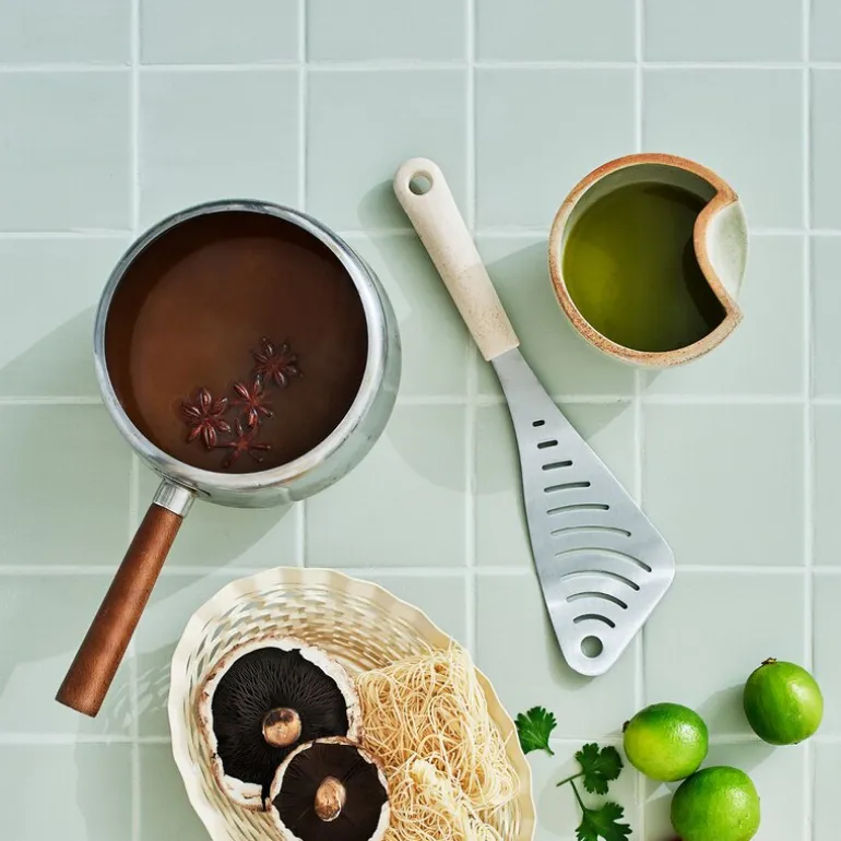 Hullene i bladet slipper gjennom overflødig fett, noe som gjør den ideell til bruk ved steking av mat med mye væske eller fettinnhold. Resultatet blir både enklere og renere matlaging.