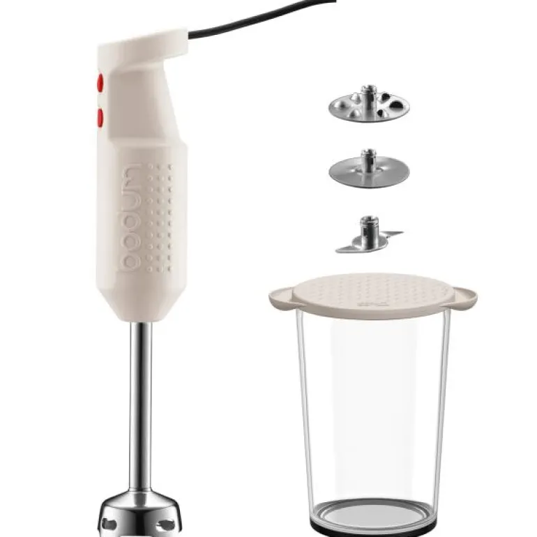 Nyt full kontroll over matlagingsoppgaver med BISTRO stavmiksersettet. Med sin kraftige motor med to hastigheter og praktiske tilbehør gir dette multifunksjons kjøkkenverktøyet deg kraften til å blande og hakke, slik at du kan lage en rekke kulinariske kreasjoner raskt og enkelt.Denne smarte gadgeten er morsom å bruke og enkel å rengjøre. Den er ideell for de som elsker å lage næringsrike, ferske måltider, men som ikke vil bruke timer på å tilberede ingrediensene. Fra purering av babymat og pisking av krem, til visp av majones og pisking av eggehviter, tilbyr denne elektriske blenderstaven en verden av allsidighet til fingerspissene. Stavmiksersettet inkluderer tre tilbehør i rustfritt stål, hver designet for spesifikke matlagingsoppgaver, pluss et beger som er ideelt for pureing og fungerer som en oppbevaringsbeholder når det toppes med det medfølgende lokket.