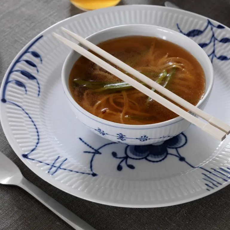 Blå Mega Riflet er både gjenkjennelig og overraskende forfriskende. I denne uvanlige nytolkningen av det klassiske mønsteret Musselmalt Riflet, har utvalgte detaljer blitt forstørret, men er fortsatt malt for hånd, slik at den originale og levende blå effekten er bevart. Mønsteret Blå Mega Riflet ble skapt av den unge designstudenten Karen Kjældgård-Larsen i 2000, og dette signaliserte starten på et nytt eventyr. Det berømte håndmalte mønsteret har blitt et kjent navn igjen som uttrykker både sin historiske autentisitet og kreative, innovative tenkning. Blå Mega Riflet ble opprinnelig designet med 8 forskjellige mønstre. På baksiden av Mega-produktet vil du finne et nummer. Dette refererer til mønsteret på dette bestemte produktet.Blå mega riflet tallerken, flat 27 cm nr. 6. Tåler oppvaskmaskin og mikrobølgeovn.