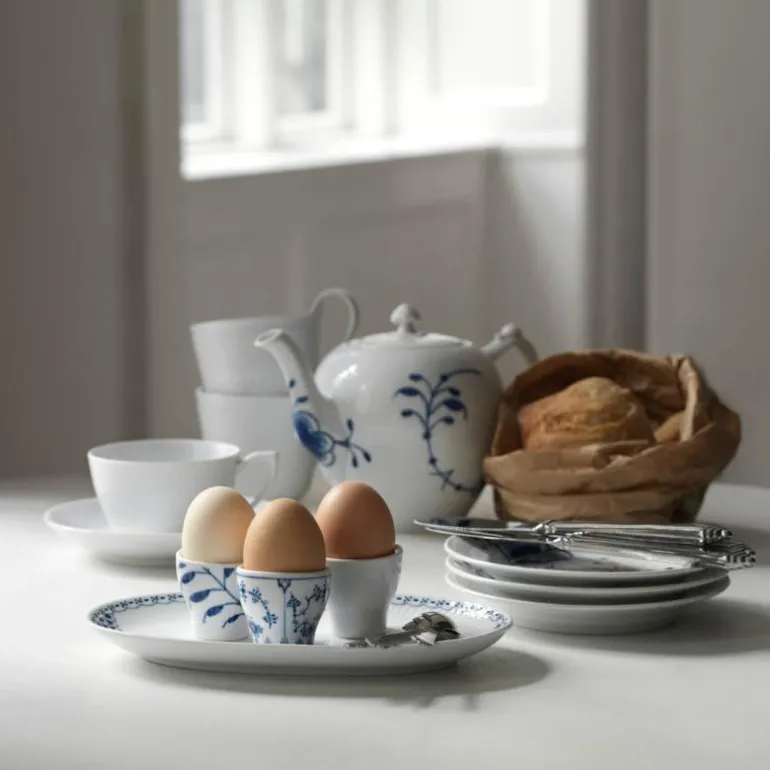 Blå Mega Riflet er både gjenkjennelig og overraskende forfriskende. I denne uvanlige nytolkningen av det klassiske mønsteret Musselmalt Riflet, har utvalgte detaljer blitt forstørret, men er fortsatt malt for hånd, slik at den originale og levende blå effekten er bevart. Mønsteret Blå Mega Riflet ble skapt av den unge designstudenten Karen Kjældgård-Larsen i 2000, og dette signaliserte starten på et nytt eventyr. Det berømte håndmalte mønsteret har blitt et kjent navn igjen som uttrykker både sin historiske autentisitet og kreative, innovative tenkning. Blå Mega Riflet ble opprinnelig designet med 8 forskjellige mønstre. På baksiden av Mega-produktet vil du finne et nummer. Dette refererer til mønsteret på dette bestemte produktet. Porselen.
