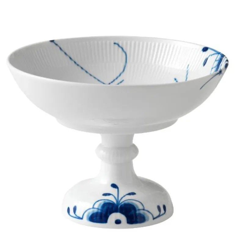 Blå Mega Riflet er både gjenkjennelig og overraskende forfriskende. I denne uvanlige nytolkningen av det klassiske mønsteret Musselmalt Riflet, har utvalgte detaljer blitt forstørret, men er fortsatt malt for hånd, slik at den originale og levende blå effekten er bevart. Mønsteret Blå Mega Riflet ble skapt av den unge designstudenten Karen Kjældgård-Larsen i 2000, og dette signaliserte starten på et nytt eventyr. Det berømte håndmalte mønsteret har blitt et kjent navn igjen som uttrykker både sin historiske autentisitet og kreative, innovative tenkning. Blå Mega Riflet ble opprinnelig designet med 8 forskjellige mønstre. På baksiden av Mega-produktet vil du finne et nummer. Dette refererer til mønsteret på dette bestemte produktet. Porselen.