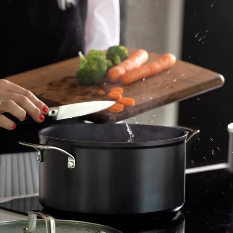 G7-belegget er kjent for sin gode holdbarhet og evne til å tåle høyere temperaturer, noe som gjør Black Line-produktene til et pålitelig valg for enhver matentusiast. De kan brukes på alle typer varmekilder og er ovnsfaste opp til 300°C, inkludert glasslokket. I tillegg kan de rengjøres i oppvaskmaskin, men det anbefales å tørke av overflødig fukt før lagring for å opprettholde kvaliteten.
