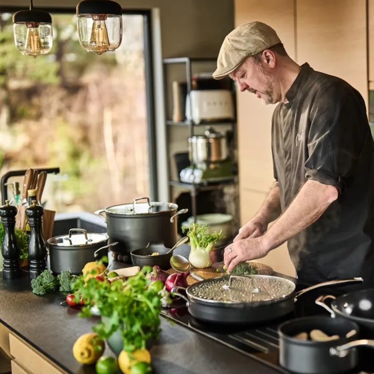 G7-belegget er kjent for sin gode holdbarhet og evne til å tåle høyere temperaturer, noe som gjør Black Line-produktene til et pålitelig valg for enhver matentusiast. De kan brukes på alle typer varmekilder og er ovnsfaste opp til 300°C, inkludert glasslokket. I tillegg kan de rengjøres i oppvaskmaskin, men det anbefales å tørke av overflødig fukt før lagring for å opprettholde kvaliteten.