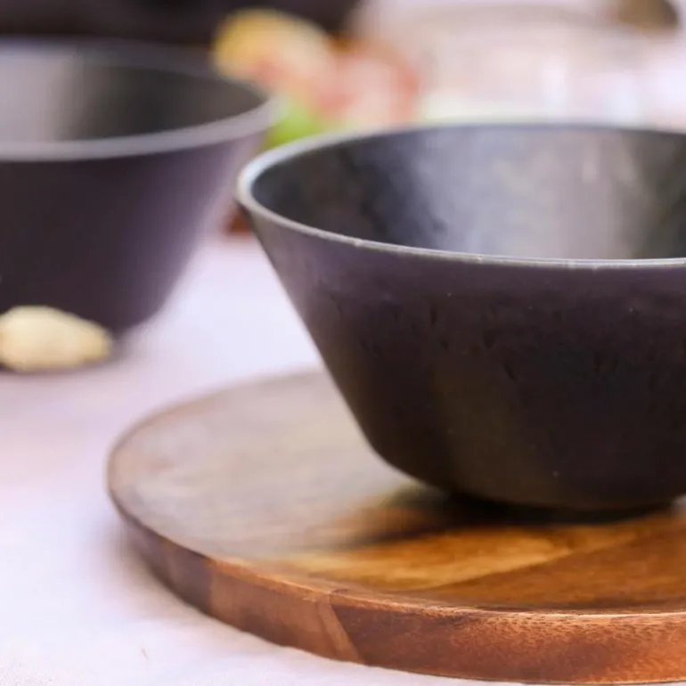 Nydelig servise i rustikt preg i dempet sort med glinsende partikler. Produsert i Portugal som er kjent for sin høye ekspertise på kvalitet til det dekkede bordet.