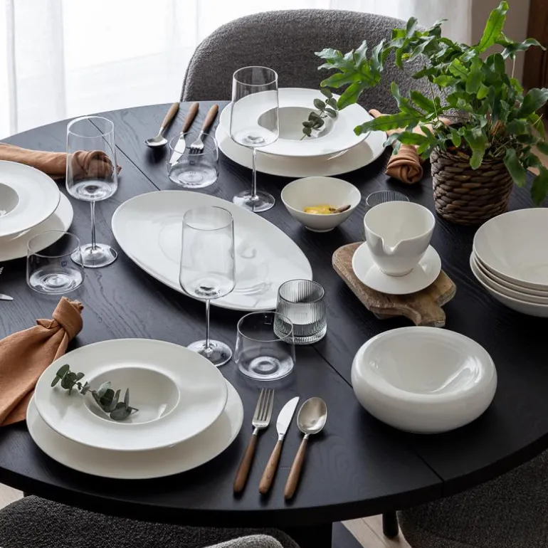 Fatet er laget av førsteklasses benporselen, også kjent som Bone China, som kombinerer styrke, letthet og en vakker, delikat glans. Materialet består av en unik blanding av benaske, kaolin, feltspat og kvarts, noe som gir fatet en luksuriøs finish og gjør det slitesterkt nok til daglig bruk.