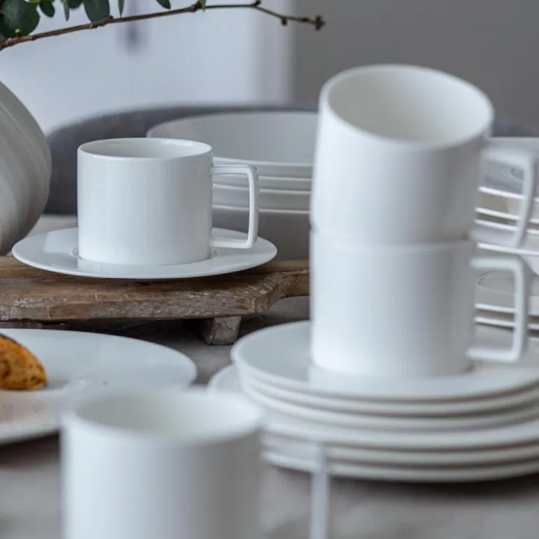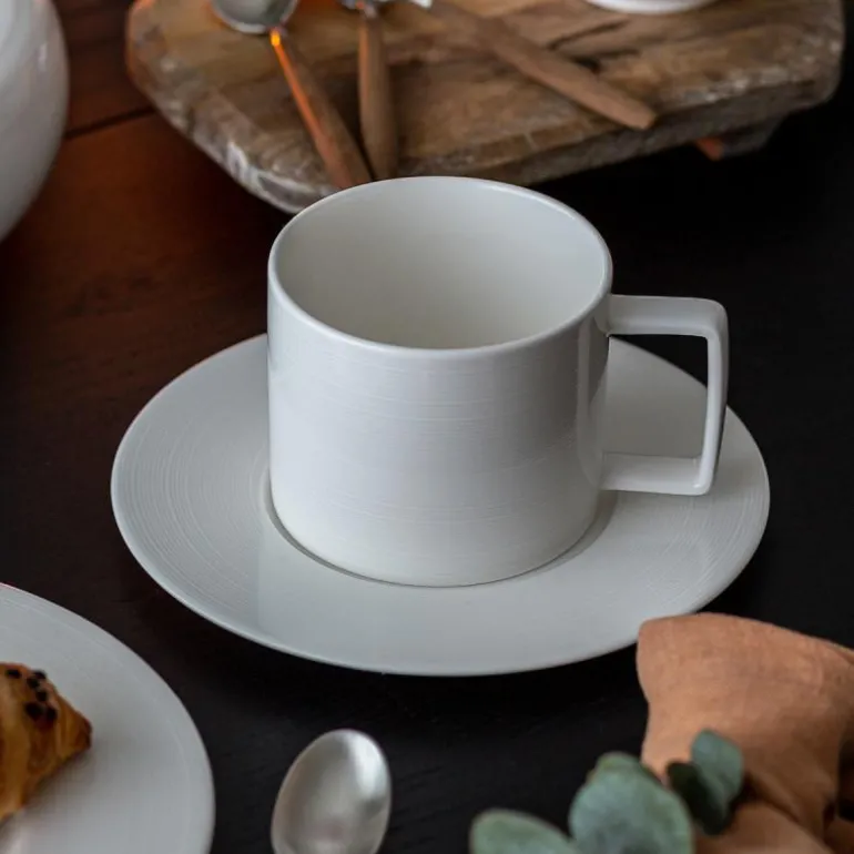 Denne koppen kombinerer et stilrent design med praktisk bruk. Den er designet for å ligge godt i hånden, og den glatte overflaten tilfører en følelse av luksus hver gang du bruker den. Den tidløse hvite fargen gjør den til et naturlig innslag i både moderne og klassiske serviser.