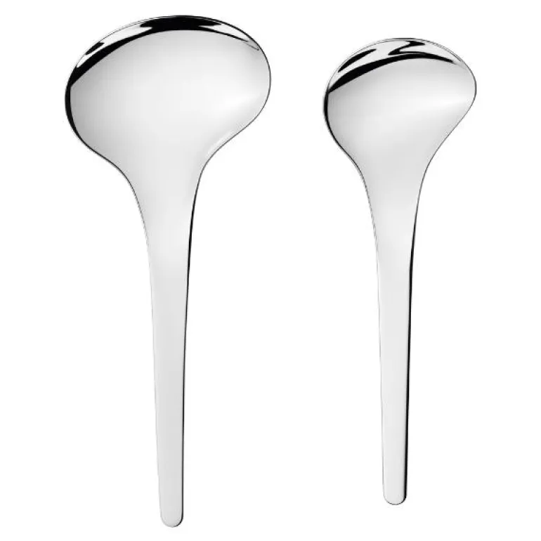 Inspirasjonen til Bloom serveringssett fra Georg Jensen kommer fra formen på kirsebærblomster i full blomst. Settet består av to serveringsskjeer i forskjellige størrelser. De er laget i rustfritt stål.