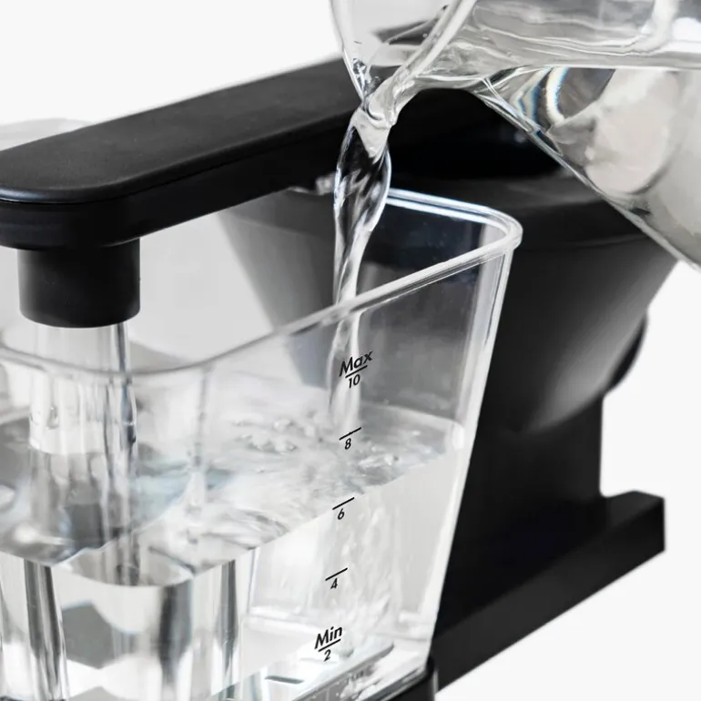 Kaffetrakteren har vannivåmerking på både vanntank og kanne. Den har også avtakbar filterholder (filterstørrelse 1×4) med magnetisk funksjon for å holde filterholderen på plass.