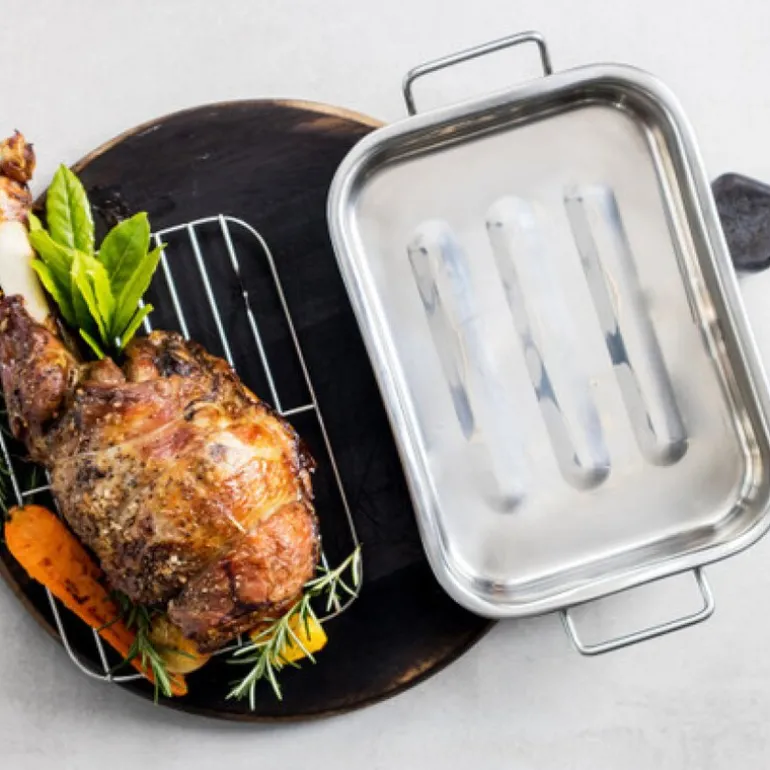 Denne praktiske langpannen er laget av solid og lett rustfritt stål som tåler høye temperaturer og passer på alle varmekilder, unntatt induksjon. Den kompakte størrelsen på 27 x 20 cm gjør den ideell for små porsjoner, og den lar juice og smaker konsentreres, slik at kjøttet får en perfekt stekt overflate uten å miste fuktighet. Saften som samler seg i bunnen, kan enkelt forvandles til en smakfull saus direkte på komfyren.