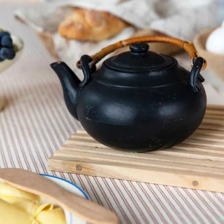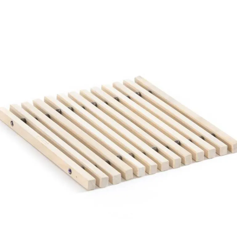 Hver spile blir høvlet ned for hånd og pusset over til de får en myk finish. Gryteunderlaget beskytter bordet eller benk godt for merker fra varme kjeler eller former.