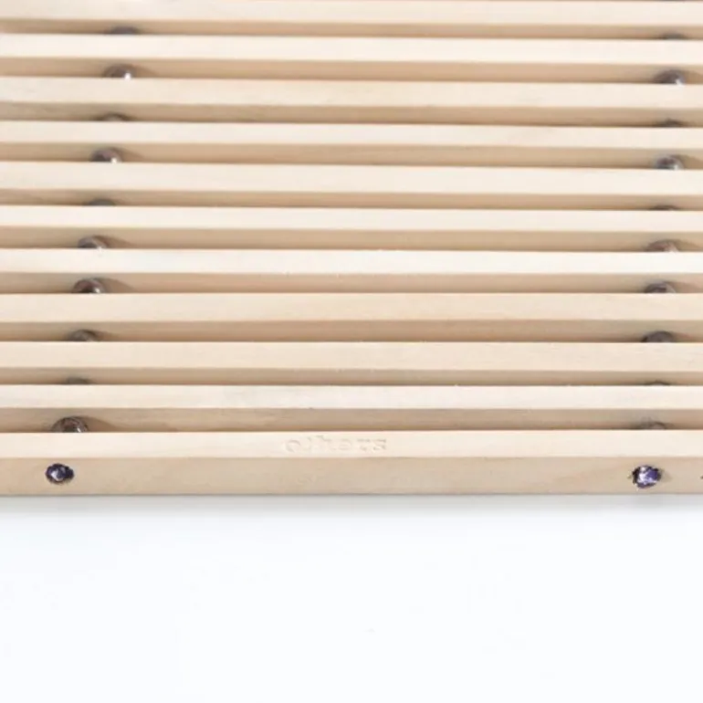 Praktisk gryteunderlag med trespiler fra Others sitt snekkerverksted i Jessore, Bangladesh. Gryteunderlaget er laget for hånd og måler ca. 21×19 og består av spiler og treperler i mellom rillene.