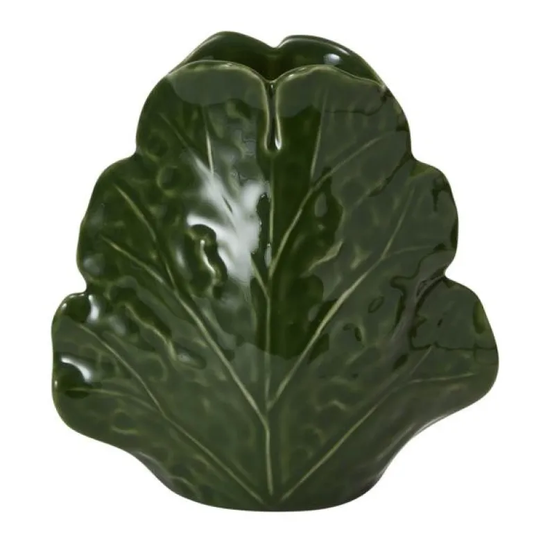 Stilig vase fra Stiernholm. Vasen er laget av stengods og inspirert av naturen. Den har en unik form som ligner et blad. Vasen er perfekt for å arrangere blomster, kvister eller andre grønne planter.