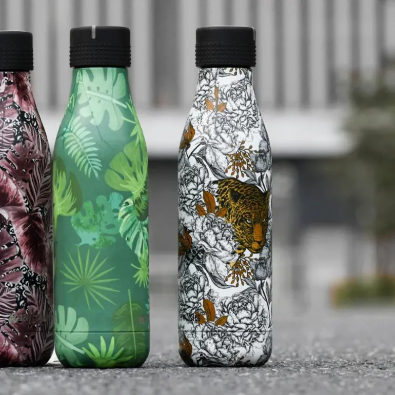 Bottle Up design er en serie med flotte mønster, design og farger. Drikkeflaske med vegger av flere lag av temperaturbevarende materialer, deriblant kobber. Holder drikkevarer varm i 12 timer og kald i 24 timer. Korken i rustfritt stål og silikon er formet som en klokke. Her kan du vri til klokkeslettet når du fyller flasken og holder kontroll på ca. temperatur på innholdet utover dagen. Stor åpning som gjør det lett å tilsette isbiter. Flasken er ikke beregnet for drikkevarer med kullsyre. Flasken bør rengjøres for hånd, for å ivareta utsidens overflate. Korken skylles i varmt vann.