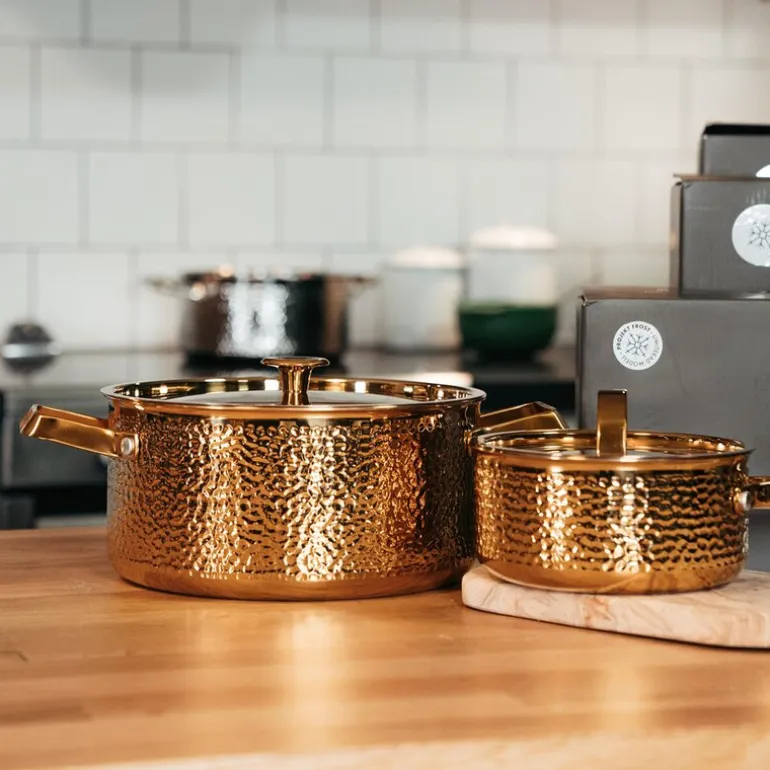 Brassa Meya gryte fra Vargen & Thor er en elegant 4-liters gryte i messing, designet for å kombinere estetikk med høy ytelse. Denne gryten har en vakker hamret overflate som gir et luksuriøst preg til kjøkkenet, mens innsiden er laget av rustfritt, børstet stål uten belegg, noe som gir både holdbarhet og enkel rengjøring.