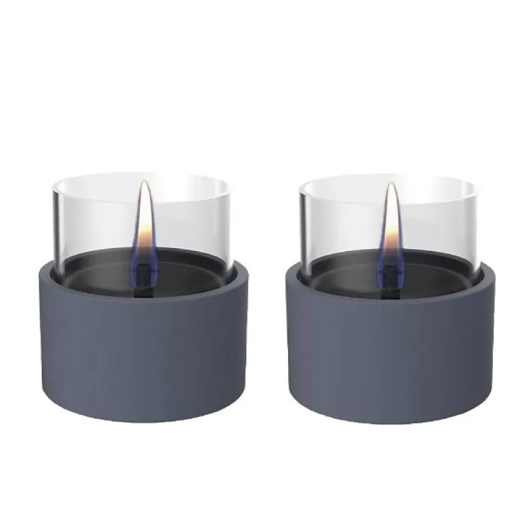 Sett med 2 stk Breezy bordlykter i fargen mørk blå, fra TenderFlame. Skap den gode stemningen med livlige dansende flammer, og nyt den koselige stemningen uten røyk, sot eller lukt. Breezy bordlykt er fremstilt i keramikk og glass, og passer ypperlig til bruk både inne og ute.